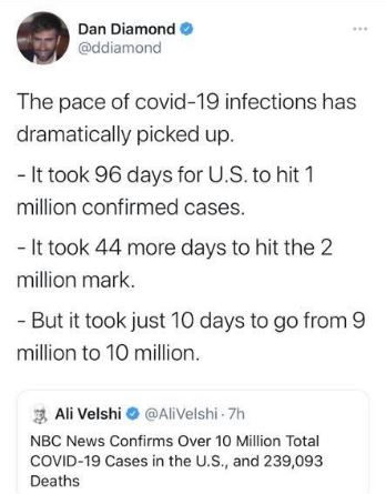I understand how hard it all is—how inconvenient, fatiguing, disruptive, and maddening. Our masking and distancing, missing friends and activities, restricting our kids’ social lives, is all immediately and concretely costly to us, and only distantly and abstractly beneficial to others (and us). Still, it is what we can do to slow the spread of a deadly virus that has infected more than 10 million Americans, and will have killed more than 240,000 of us by tomorrow.
