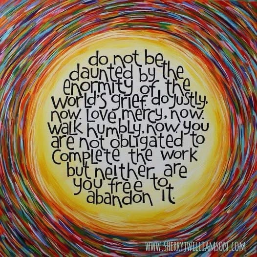 Once again I find myself asking, “What can I do, I’m just one person?” Somehow this week, treating people all along the political spectrum with respect, asking open and honest questions, holding the benefit of the doubt, resisting outrage in favor of calm and curious exploration of diverse perspectives, and withholding judgment just don’t feel like enough. And yet there is so much to advocate for, so much to resist, so much happening every day, it’s overwhelming. Where would I even start? And I think that’s the point, right? Submission by way of learned helplessness.