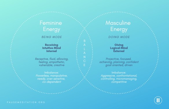 If we define masculine and feminine as ‘energies,’ then I think we can agree that all humans, regardless of gender, possess both. They manifest in infinite combinations depending on myriad factors. Both energies serve us, and their healthy integration elevates our relationships and effectiveness exponentially, compared to when they are imbalanced.