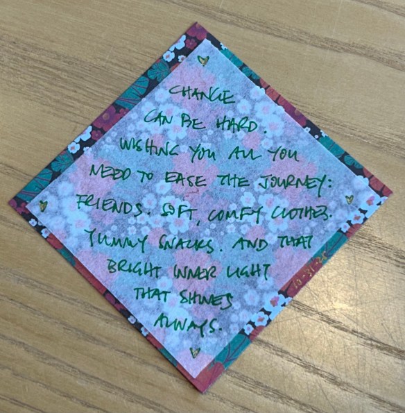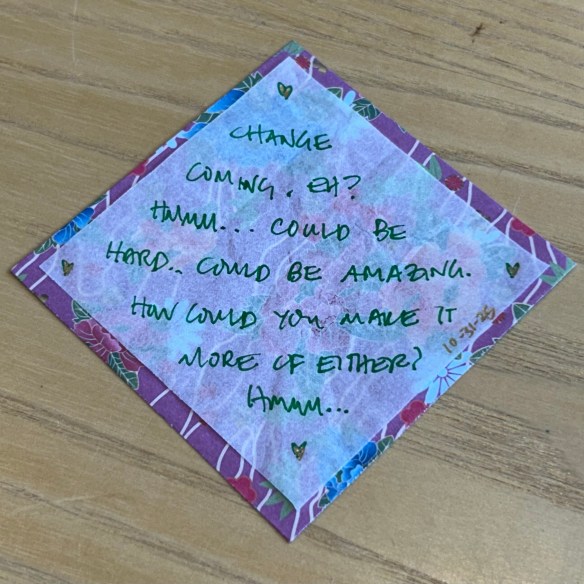 I guess the trick is to expect change and not to fear it. To look upon it as a new opportunity. Hope your changes are good changes, Cathy.