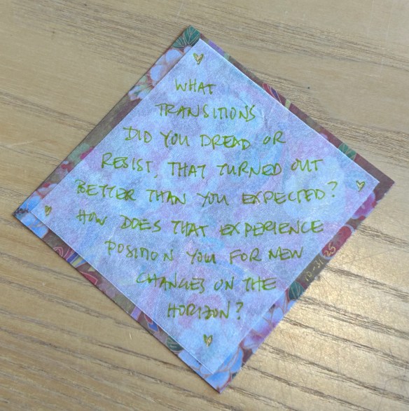 “We can make peace with this transition—that’s a life skill and practice, no? What is life but a series of transitions, a practice in adaptation?”
