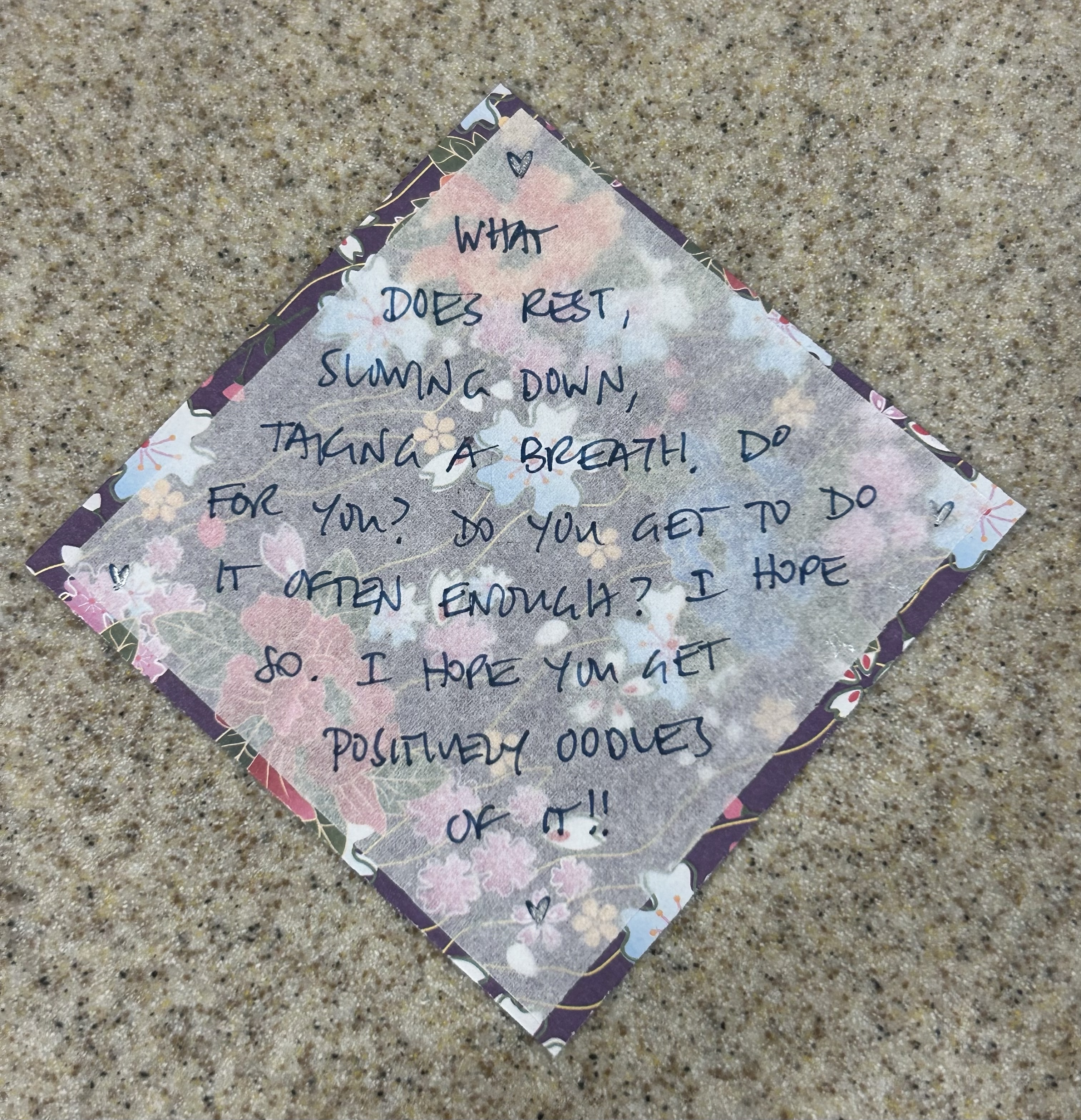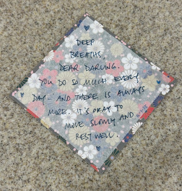 2. Deep breaths, dear darling. You do so much every day — and there is always more. It’s okay to move slowly and rest well.