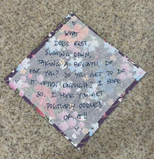5. What does rest, slowing down, taking a breath, do for you? Do you get to do it often enough? I hope so. I hope you get positively oodles of it!!