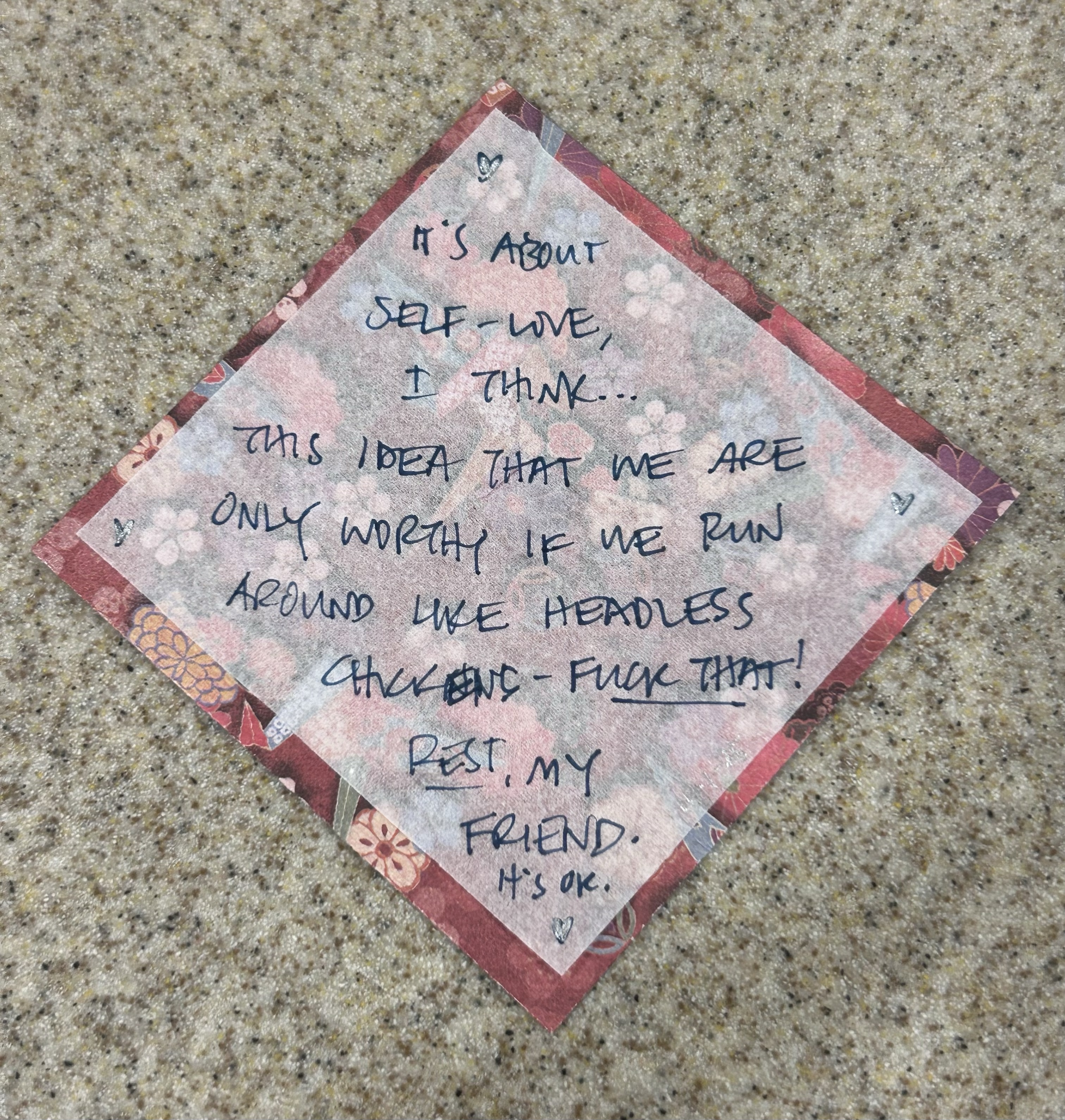 3. It’s about self-love, I think… This idea that we are only worthy if we run around like headless chickens–FUCK THAT! Rest, my friend. It’s OK.