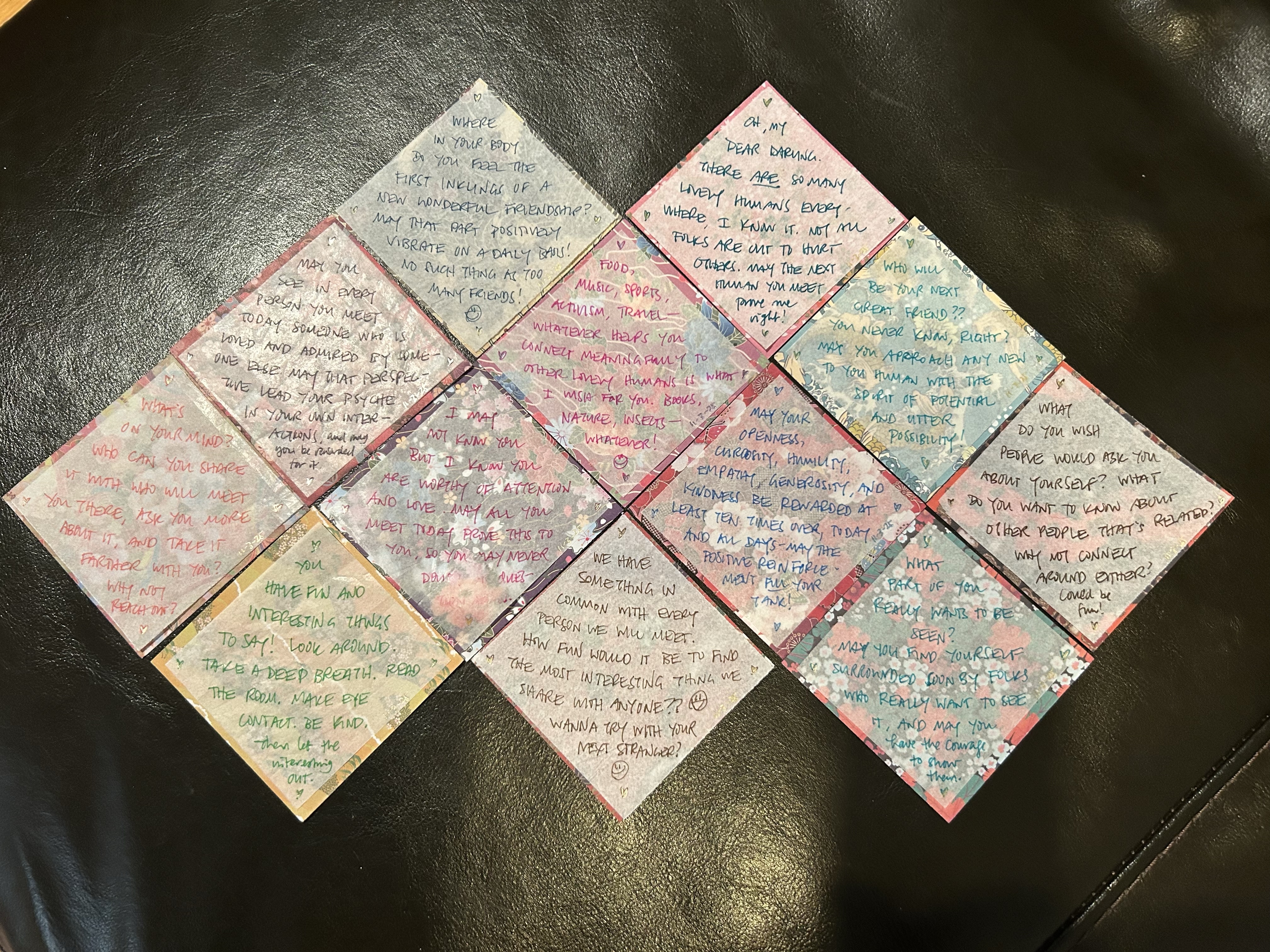 How often do you walk away from random conversations feeling uplifted, connected, intrigued, and reflective? How awesome would it be to have this every time you met someone, anyone, anywhere, under any circumstance? It may not be realistic, but hey, aim for the sun, right? Let’s see if I can inspire this attitude in tonight’s twelve, shall we? I’m excited for this challenge: