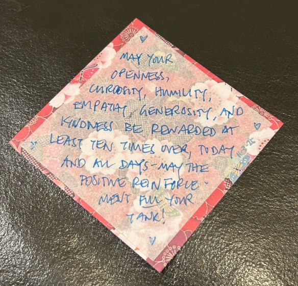 4. May your openness, curiosity, humility, empathy, generosity, and kindness be rewarded at least ten times over, today and all days — May the positive reinforcement fill your tank!