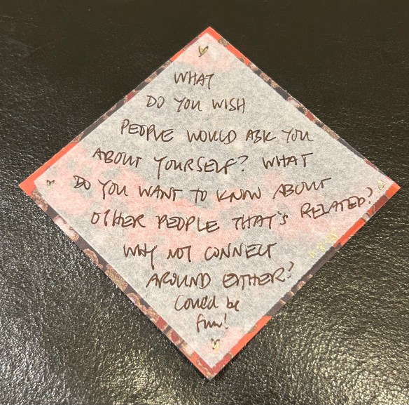 2. What do you wish people would ask you about yourself? What do you want to know about other people that’s related? Why not connect around either? Could be fun!
