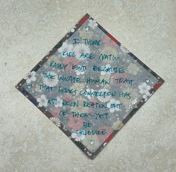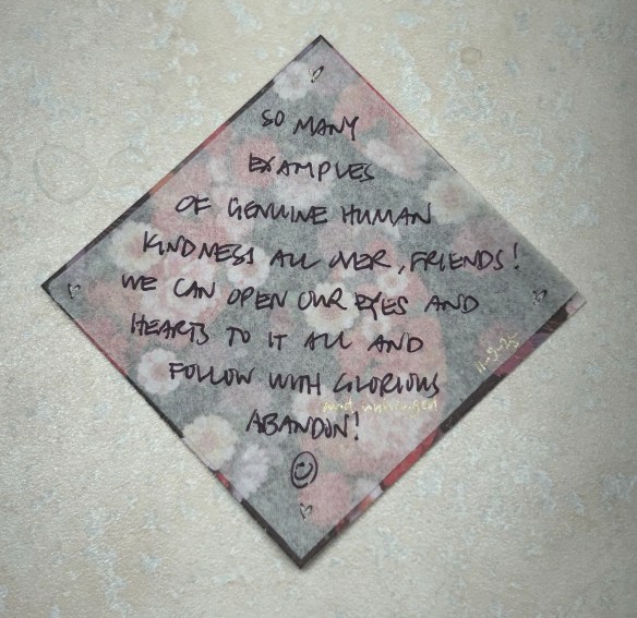 Lovely, Cathy. And your timing couldn’t be better, as this is the first day of World Kindness Week (November 10-16, 2025). World Kindness Day is always the 13th of November. Your kindness, however, shines all year round!