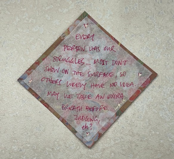 - Every person has our struggles… Most don’t show on the surface, so others likely have no idea. May we take an extra breath before judging, eh?