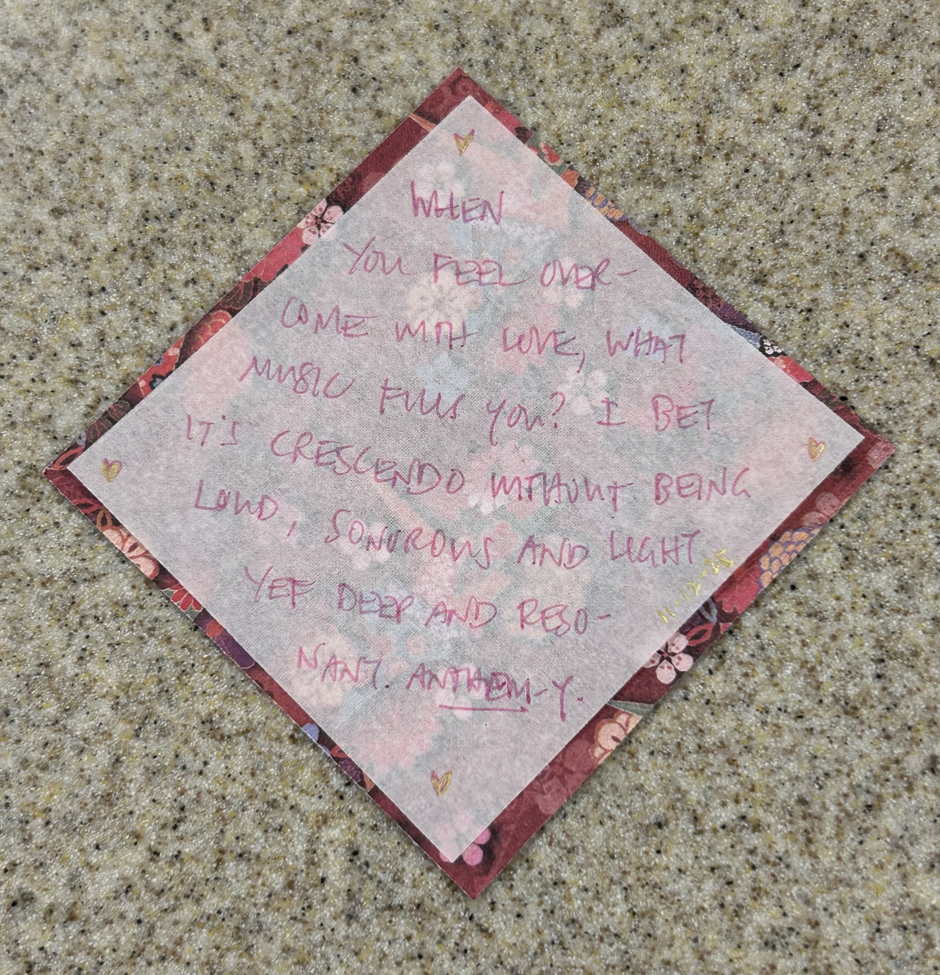 8. When you feel overcome with love, what music fills you? I bet it’s crescendo without being loud, sonorous and light yet deep and resonant. ANTHEM-y.