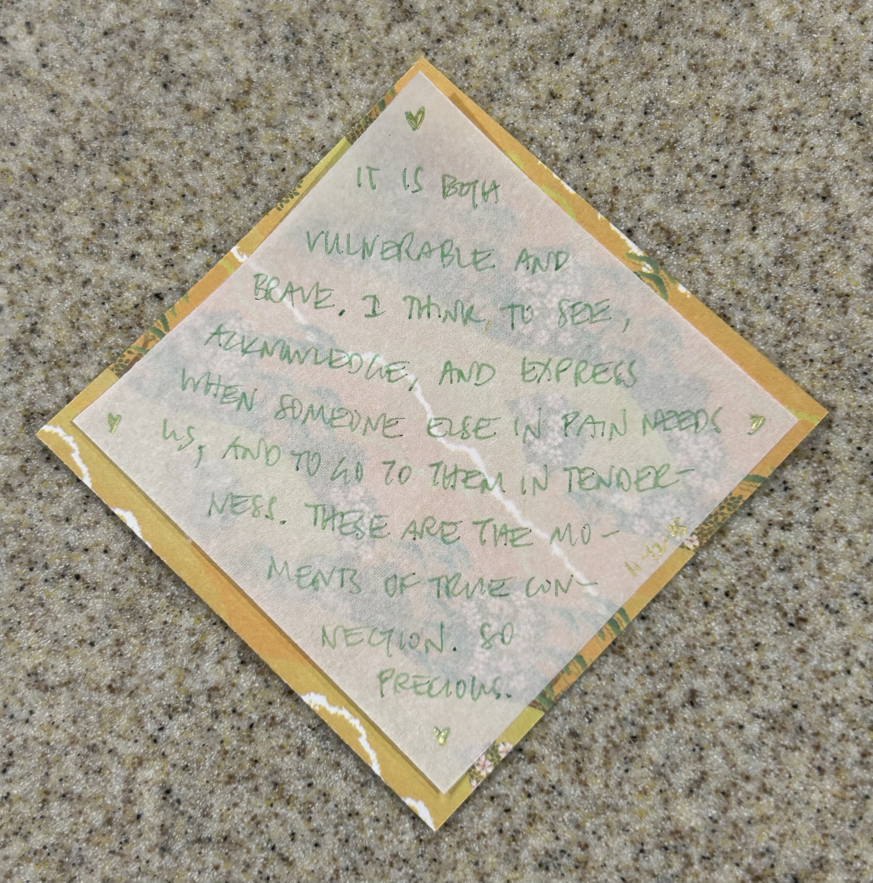 9. It is both vulnerable and brave, I think, to see, acknowledge, and express when someone else in pain needs us, and to go to them in tenderness. These are the moments of true connection. So precious.