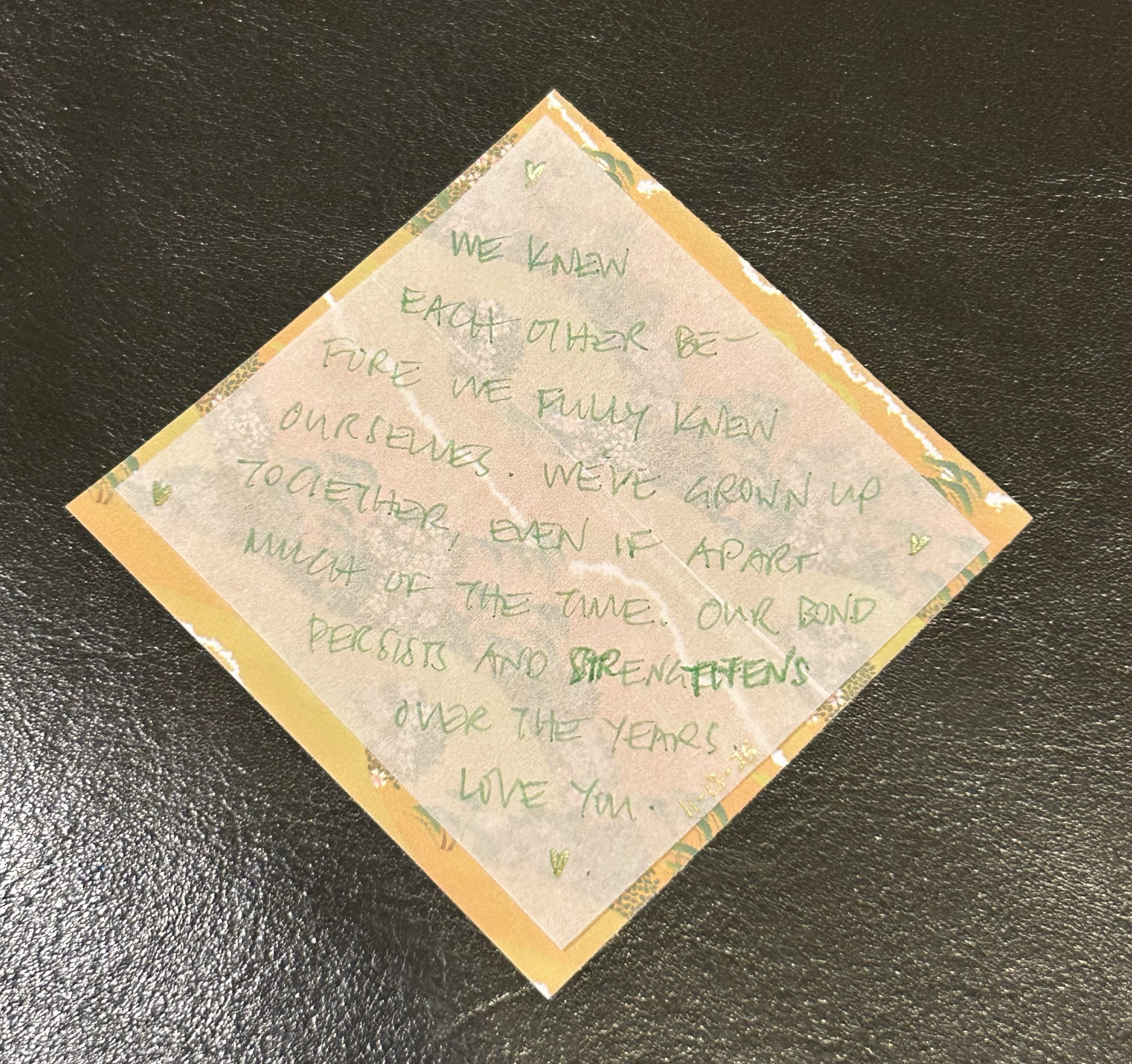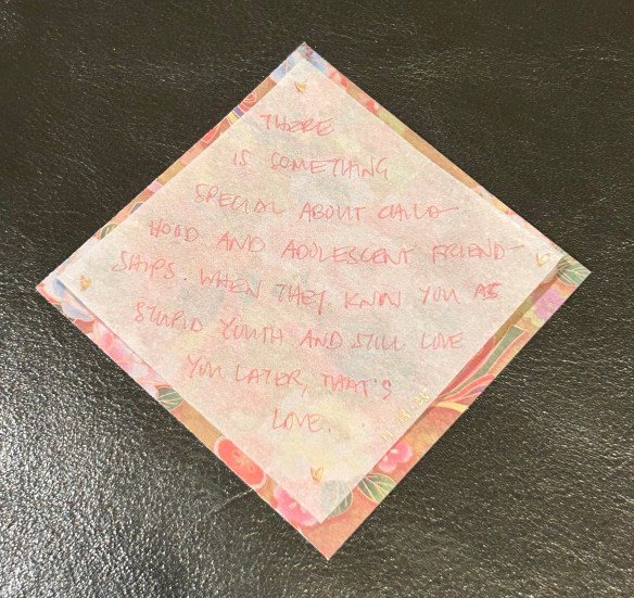 7. We knew each other before we fully knew ourselves. We’ve grown up together, even if apart much of the time. Our bond persists and strengthens over the years. Love you.