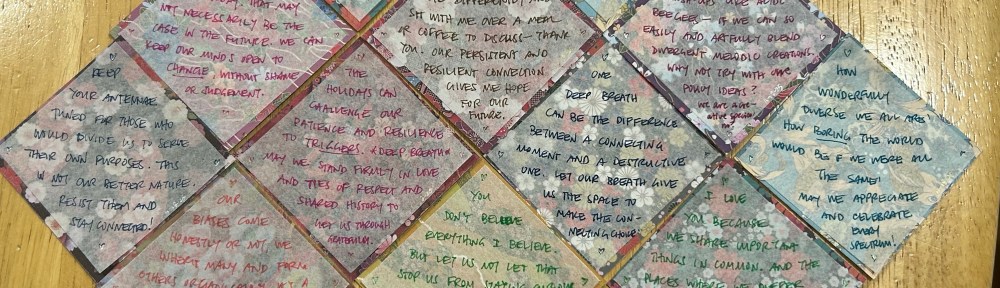 Yes, connections…conversations…listening. There’s no dialogue without listening to the other person’s point of view, and that seems to be sadly lacking at present.