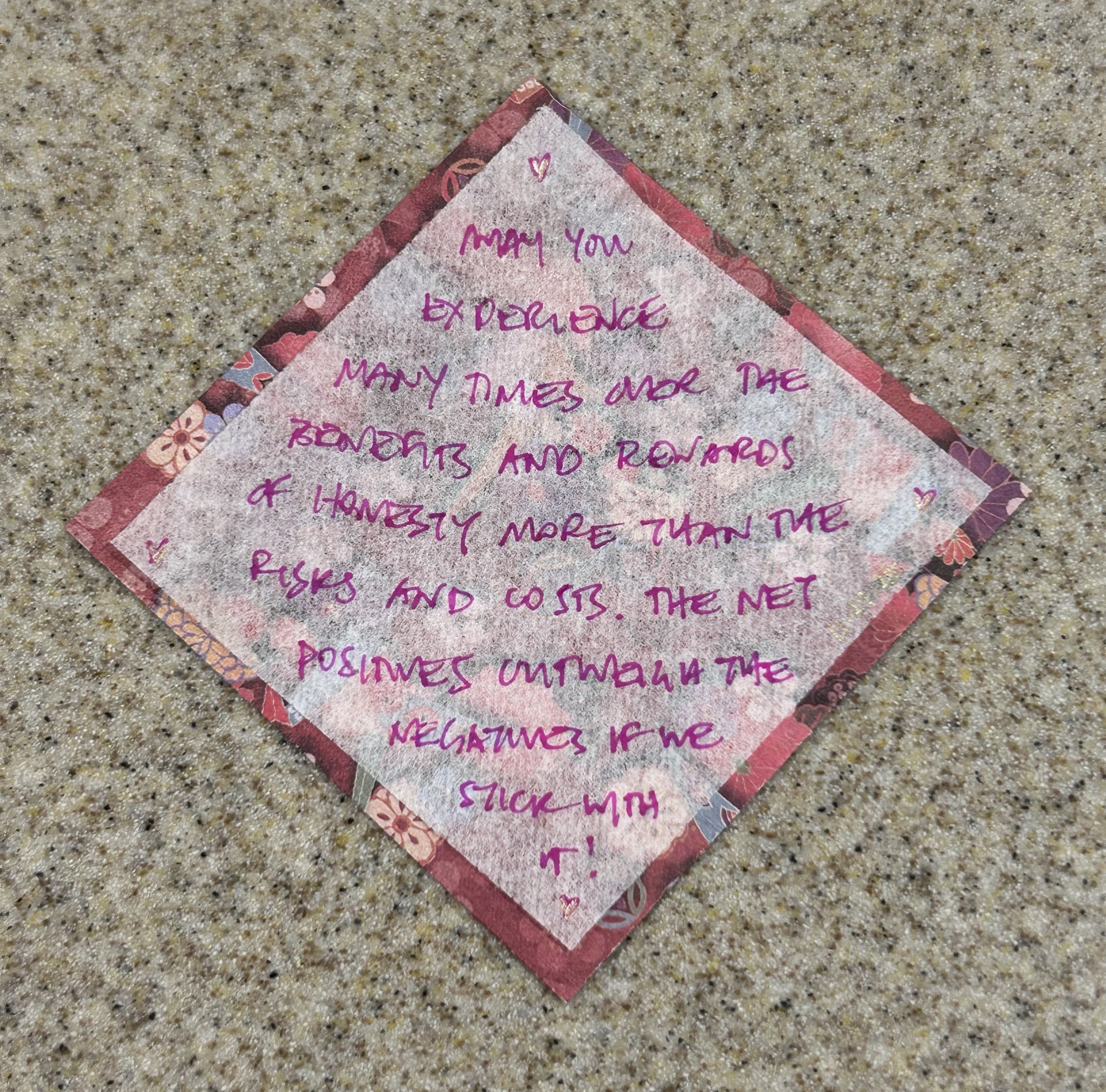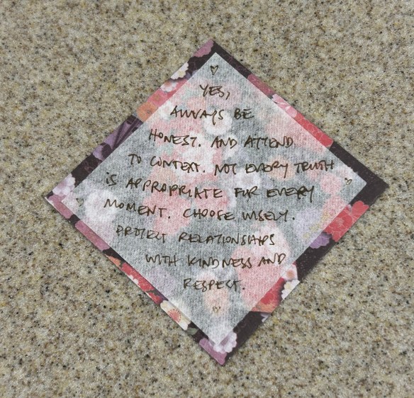 This one will be a challenge, friends. How does one write love notes about honesty without sounding condescending? Most of these will be self-reflection, I think. So I invite my friends to join in exploration and aspiration. Let’s see what happens!