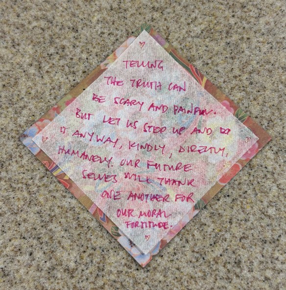 3. Telling the truth can be scary and painful. But let us step up and do it anyway, kindly, directly, humanely. Our future selves will thank one another for our moral fortitude.