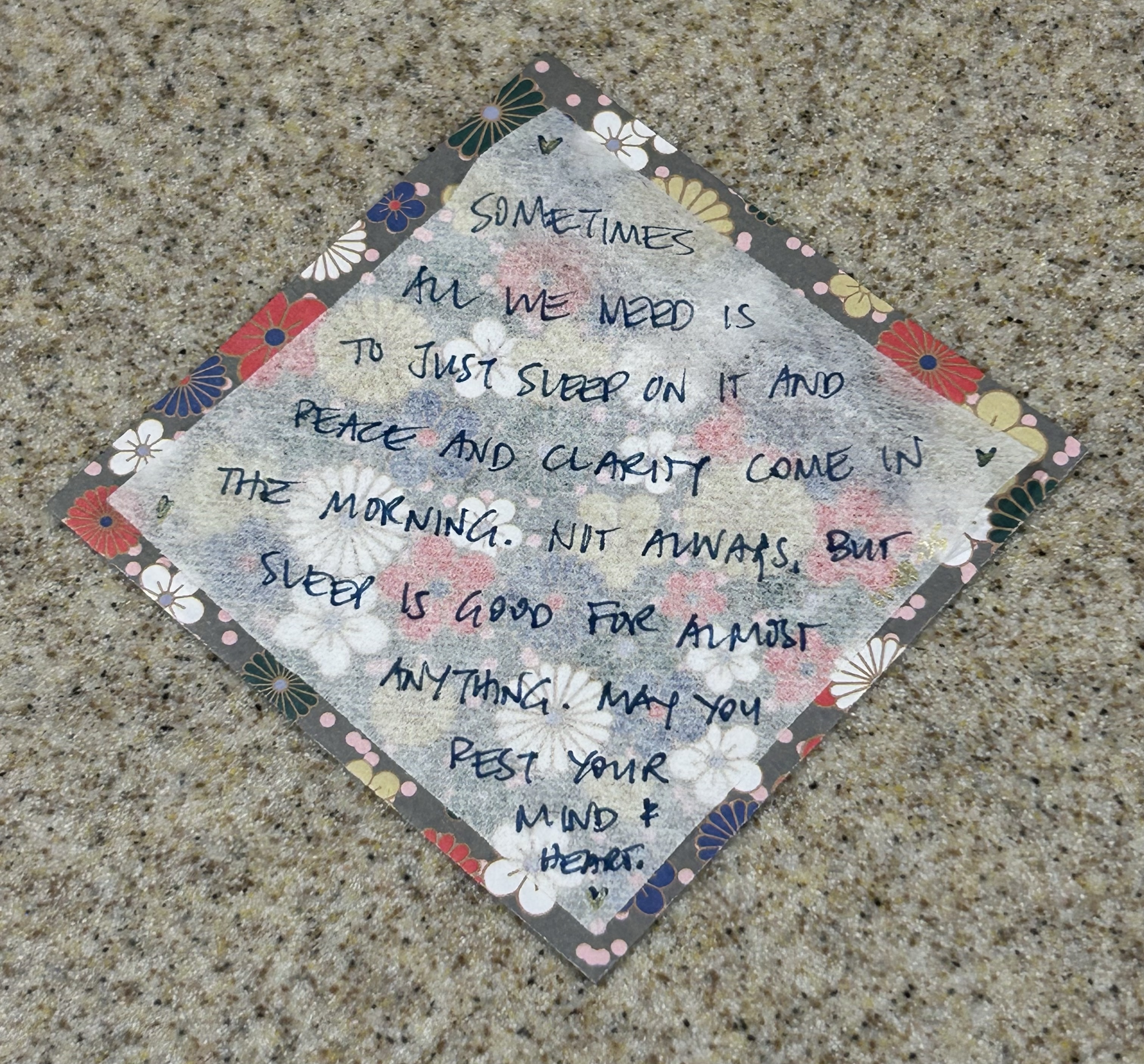 10. Sometimes all we need is to just sleep on it and peace and clarity come in the morning. Not always, but sleep is good for almost anything. May you rest your mind and heart.