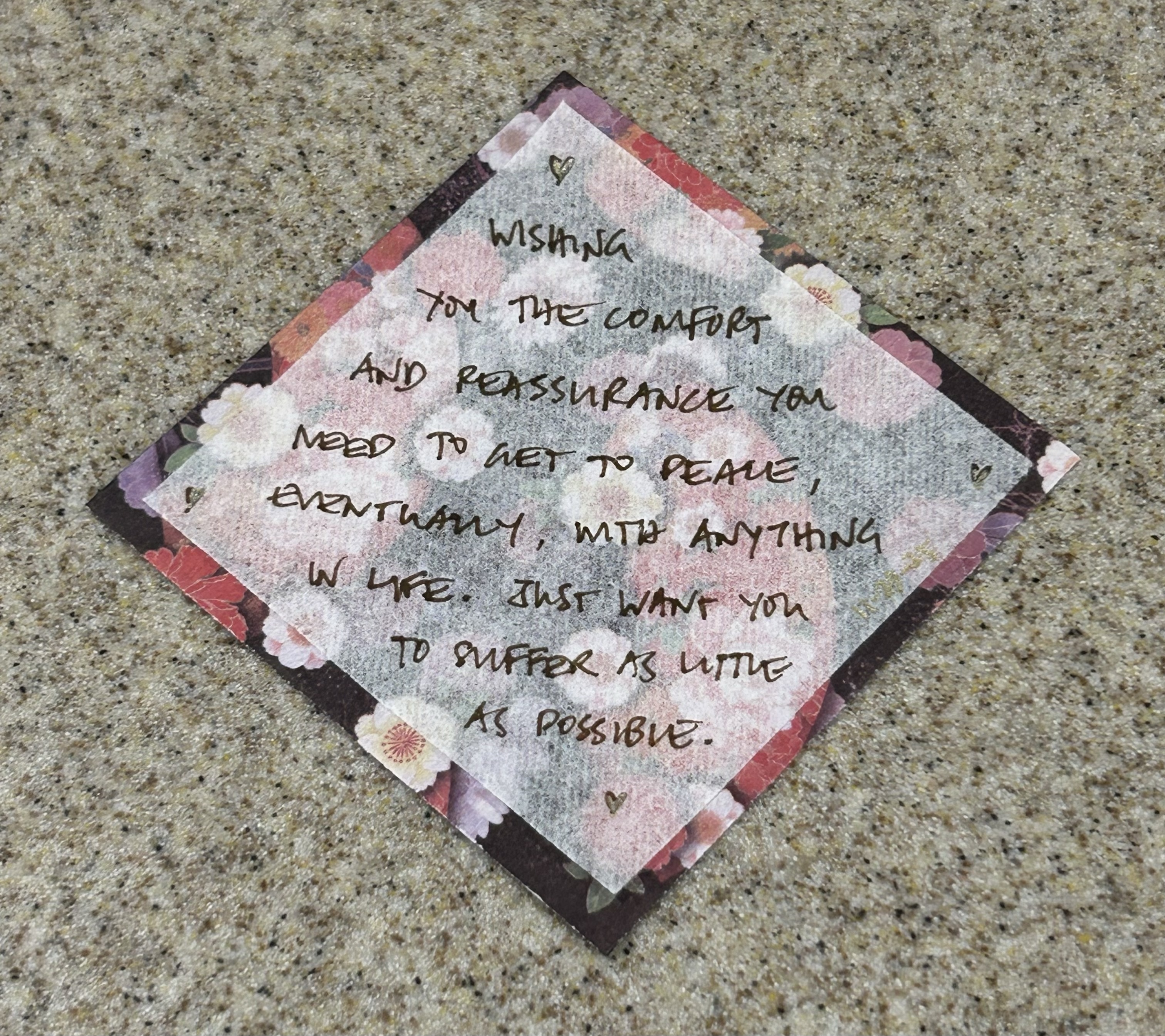 - Wishing you the comfort and reassurance you need to get to peace, eventually, with anything in life. Just want you to suffer as little as possible.