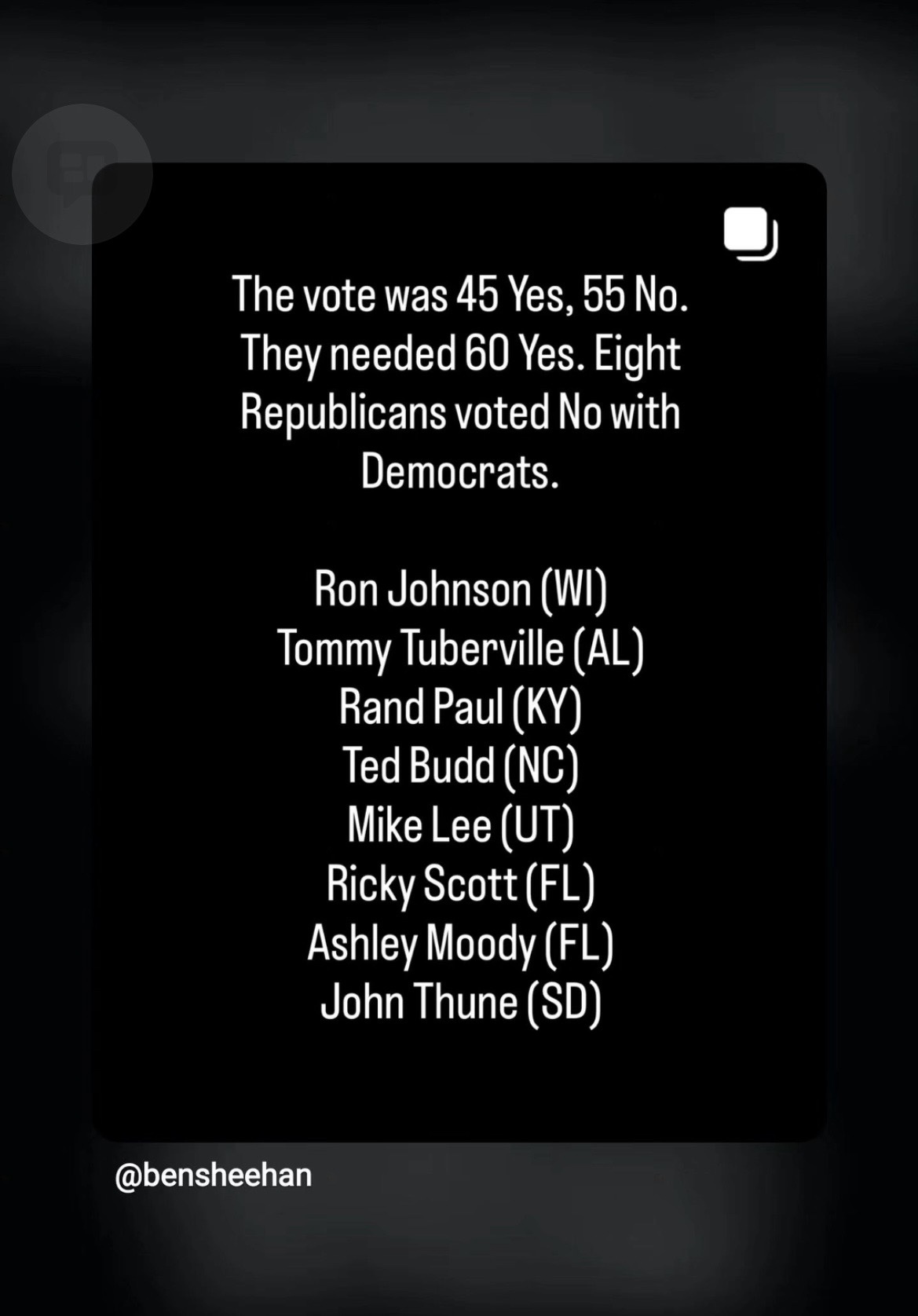 “Eight Republicans joined every Senate Democrat to block sweeping government funding legislation from advancing Thursday amid ongoing negotiations around a potential offramp to avert a lengthy shutdown of several agencies.