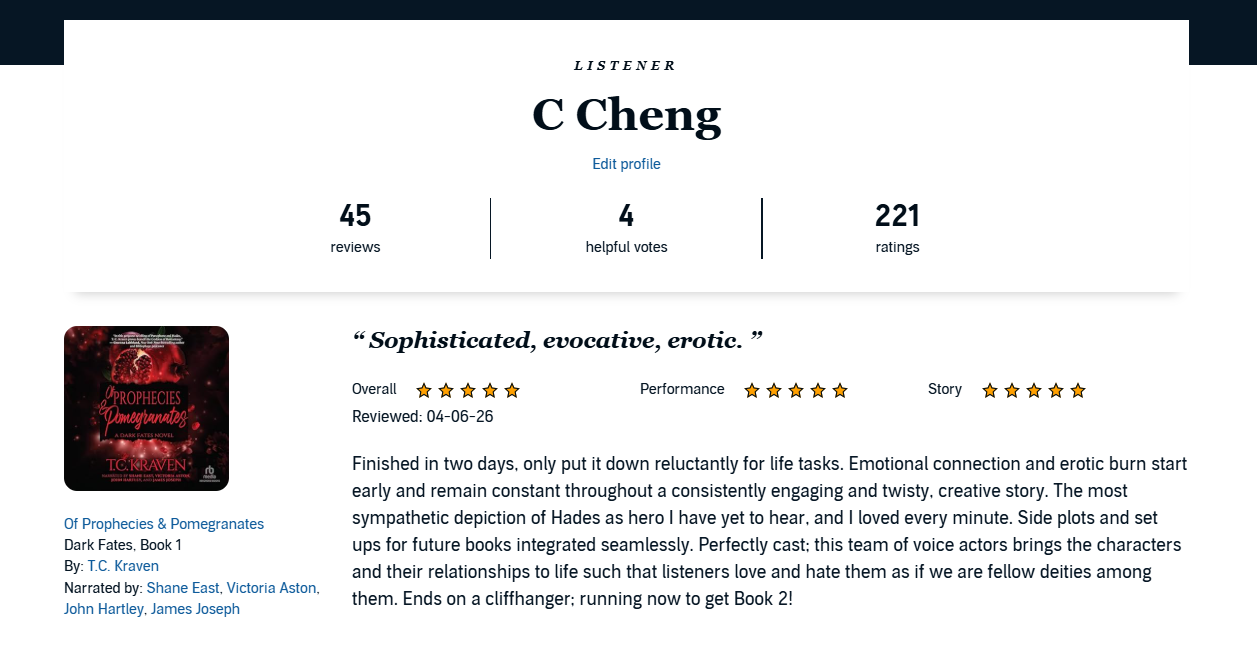 My Audible review for Of Prophecies and Pomegranates by TC Kraven