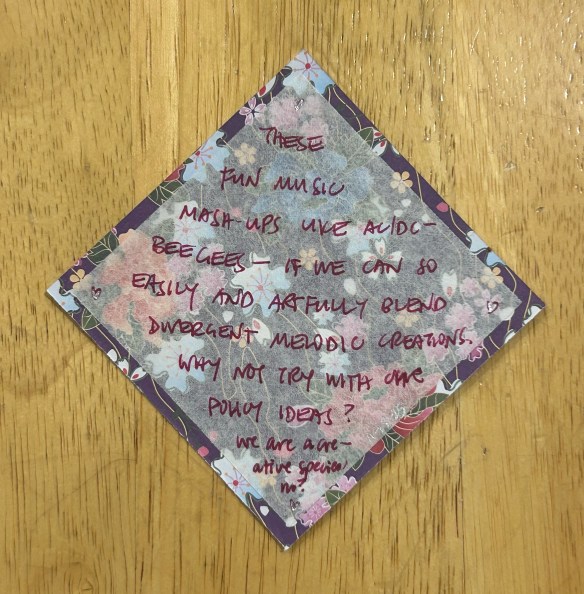 12. These fun music mash-ups like AC/DC-BeeGees — If we can so easily and artfullly blend divergent melodic creations, why not try with our policy ideas? We are a creative species, no?
