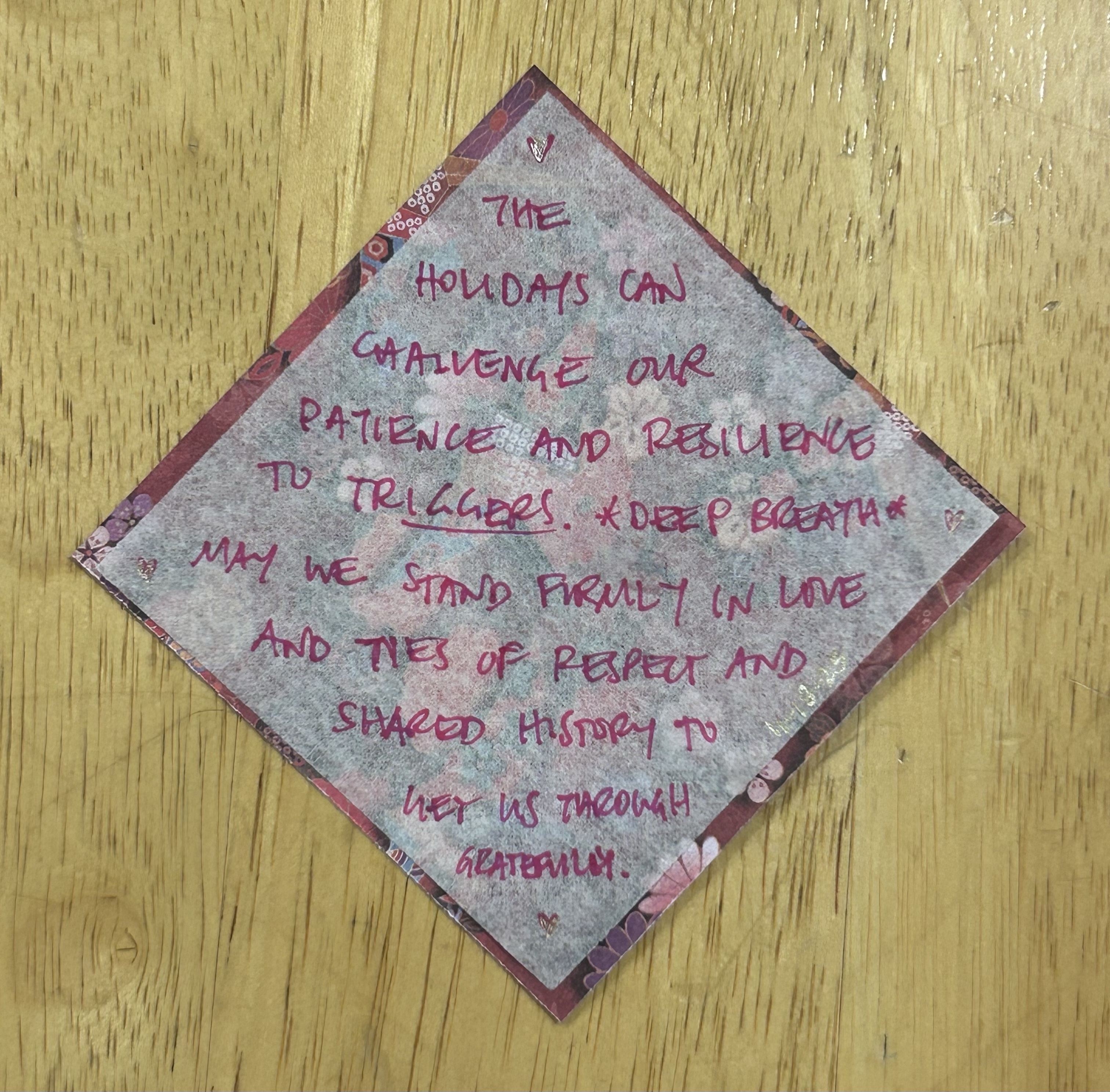 4. The holidays can challenge our patience and resilience to triggers. *deep breath* May we stand firmly in love and ties of respect and shared history to get us through gratefully.