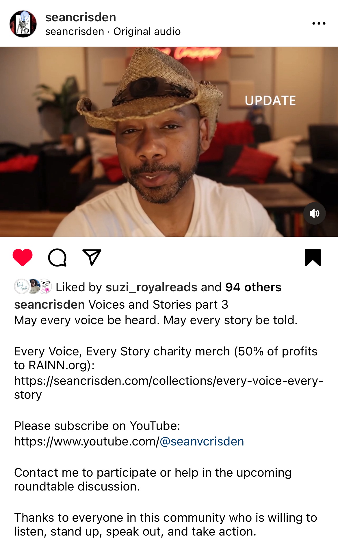 Watch Sean Crisden’s Instagram video here; subscribe to his YouTube channel here. He is preparing a round table discussion, which he specifically states is meant to include a divergence of perspectives. I will try to participate in that.